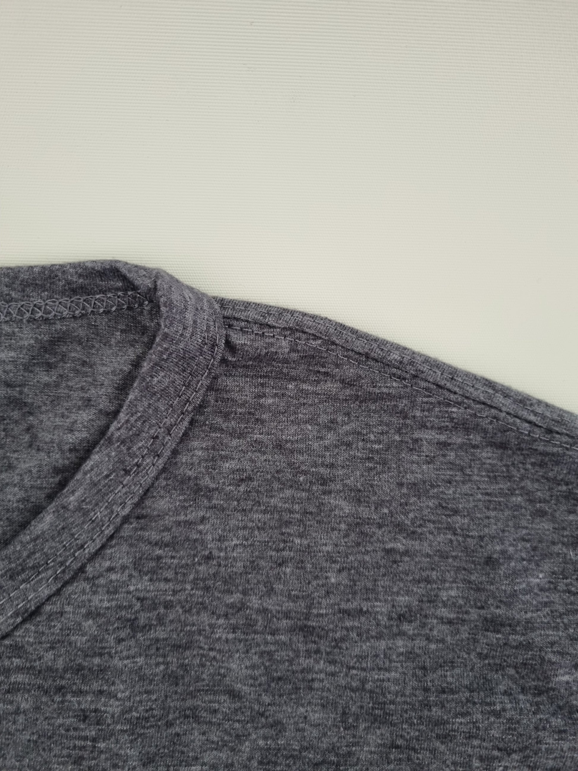 Features include a self-fabric crew neckline binding and cover seam and double top-stitching at the hem and sleeves